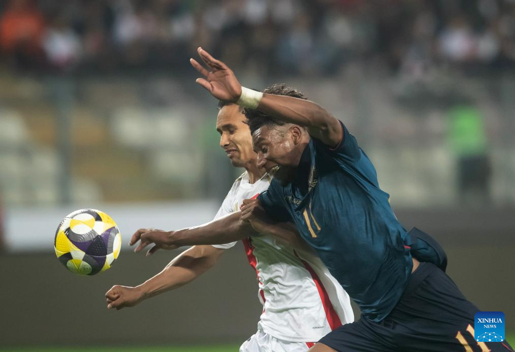 LIMA, 11 junio, 2025 (Xinhua) -- Imagen del 10 de junio de 2025 de Renzo Garcés (i), de Perú, disputando el balón con Kevin Rodríguez (d), de Ecuador, durante el partido correspondiente a las Eliminatorias Sudamericanas para el Mundial de Estados Unidos, México y Canadá 2026 celebrado en el Estadio Nacional, en Lima, Perú. (Xinhua/Mariana Bazo)