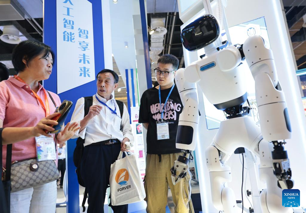SHANGHAI, 11 junio, 2025 (Xinhua) -- Visitantes conversan cerca de un robot humanoide exhibido durante la 11ª Feria Internacional de Tecnología de China (Shanghai) (CSITF, por sus siglas en inglés), en Shanghai, en el este de China, el 11 de junio de 2025. Alrededor de 1.000 expositores de casi 20 países y regiones mostraron aquí sus logros innovadores. (Xinhua/Fang Zhe)