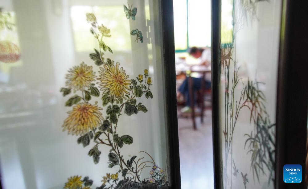 YANCHENG, 11 junio, 2025 (Xinhua) -- Imagen del 6 de junio de 2025 de Chen Boyu trabajando en una obra de arte de bordado de cabello en la fábrica de bordado de cabello de Jiali, en la ciudad de Dongtai, en Yancheng de la provincia de Jiangsu, en el este de China. El Bordado de Cabello de Dongtai, que se originó de la costumbre popular de utilizar cabellos humanos como hilo para bordar a Buda en la dinastía Tang (618-907) de China, tiene una historia de más de 1.300 años. (Xinhua/Xin Yuewei)