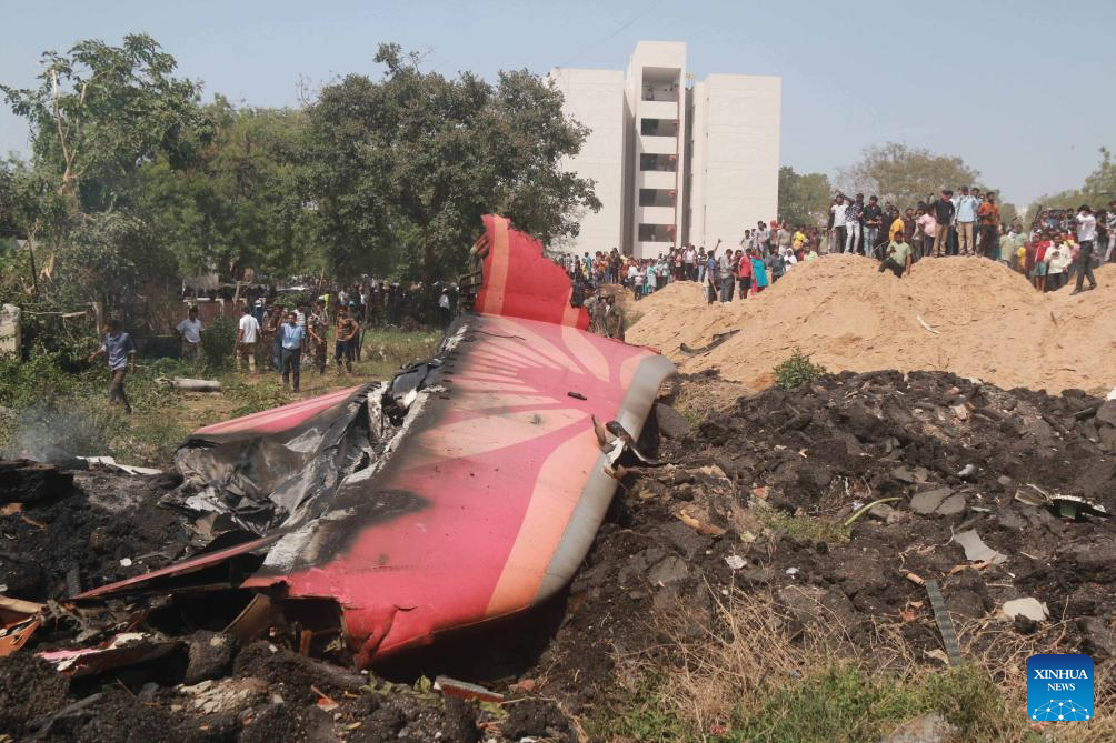 Personas observan los restos de un avión de Air India que se estrelló, en Ahmedabad, en el estado de Gujarat, India, el 12 de junio de 2025. (Xinhua/UNI)