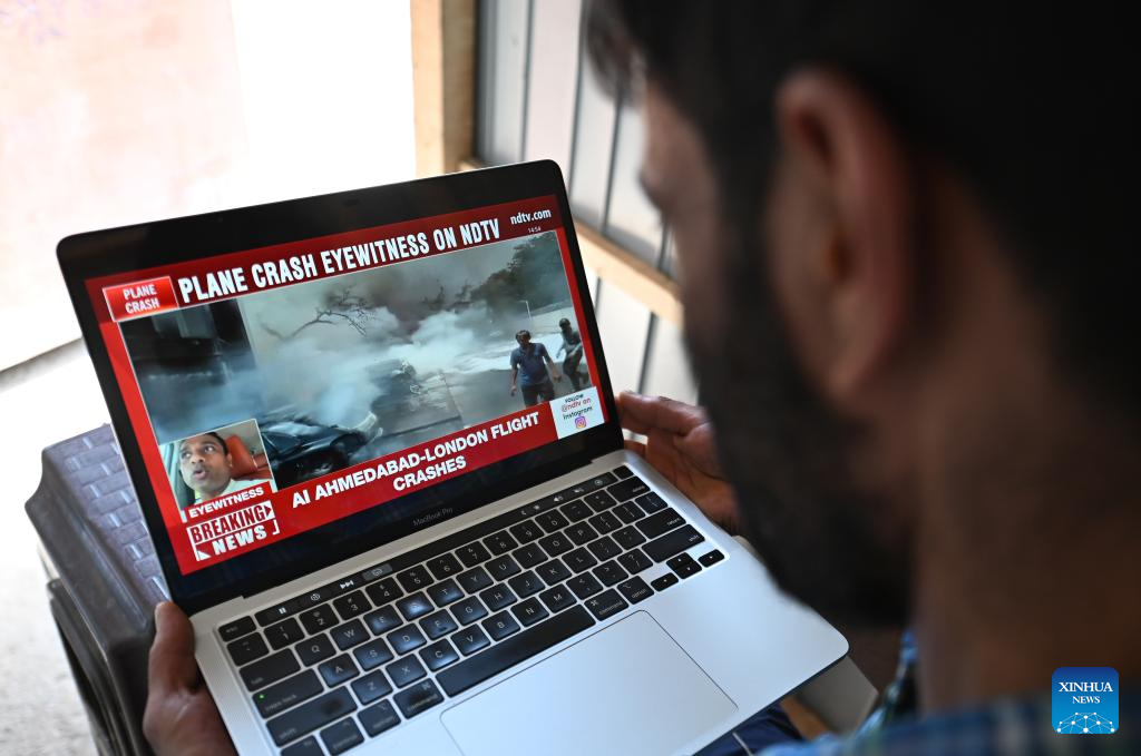 Imagen tomada en Srinagar, en Cachemira controlada por India, de un hombre observando las noticias de un accidente aéreo ocurrido en Ahmedabad, en el estado de Gujarat, India, el 12 de junio de 2025. (Xinhua/Javed Dar)