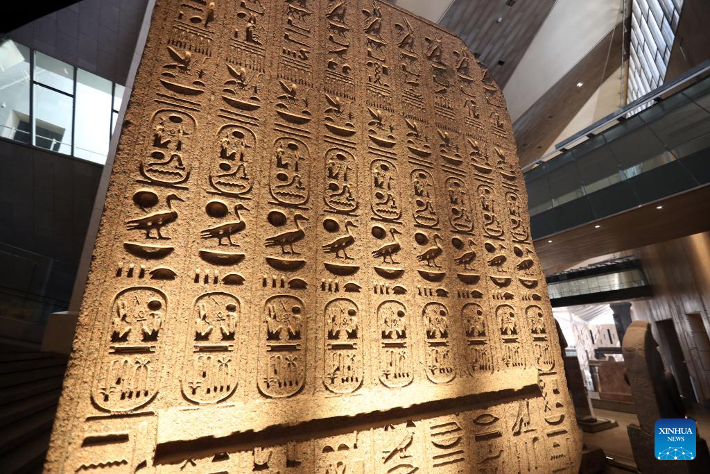 GIZA, 12 junio, 2025 (Xinhua) -- Imagen del 12 de junio de 2025 de un objeto exhibido en el Gran Museo Egipcio, en Giza, Egipto. Ubicado cerca de las pirámides de Giza, el Gran Museo Egipcio, con una superficie de más de 500.000 metros cuadrados y más de 100.000 objetos, abrirá oficialmente sus puertas el 3 de julio de este año. (Xinhua/Sui Xiankai)