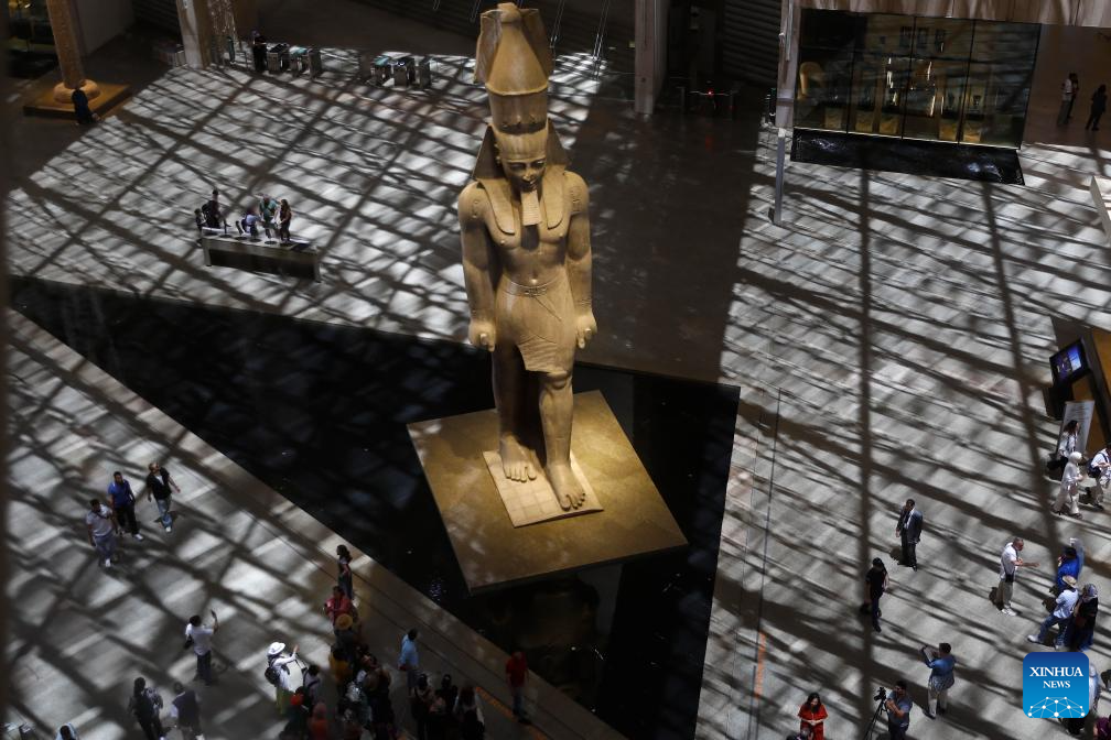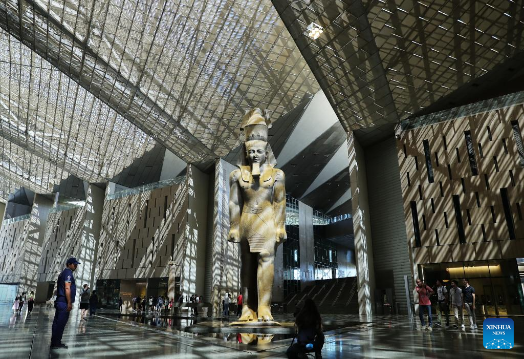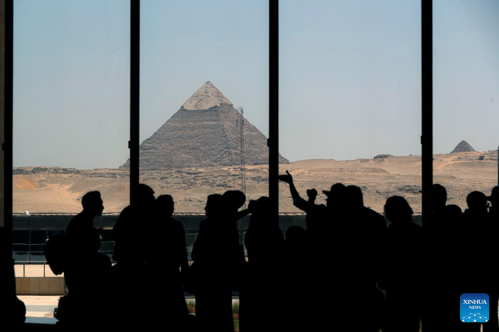 GIZA, 12 junio, 2025 (Xinhua) -- Turistas visitan el Gran Museo Egipcio, en Giza, Egipto, el 12 de junio de 2025. Ubicado cerca de las pirámides de Giza, el Gran Museo Egipcio, con una superficie de más de 500.000 metros cuadrados y más de 100.000 objetos, abrirá oficialmente sus puertas el 3 de julio de este año. (Xinhua/Wang Dongzhen)