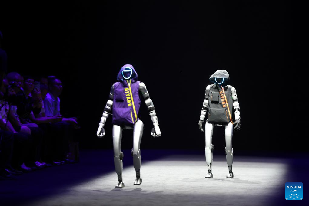 TIANJIN, 13 junio, 2025 (Xinhua) -- Imagen del 12 de junio de 2025 de modelos robots humanoides presentando creaciones en la Semana de la Moda de Tianjin 2025, en Tianjin, en el norte de China. El evento de moda se inauguró aquí el jueves. (Xinhua/Sun Fanyue)