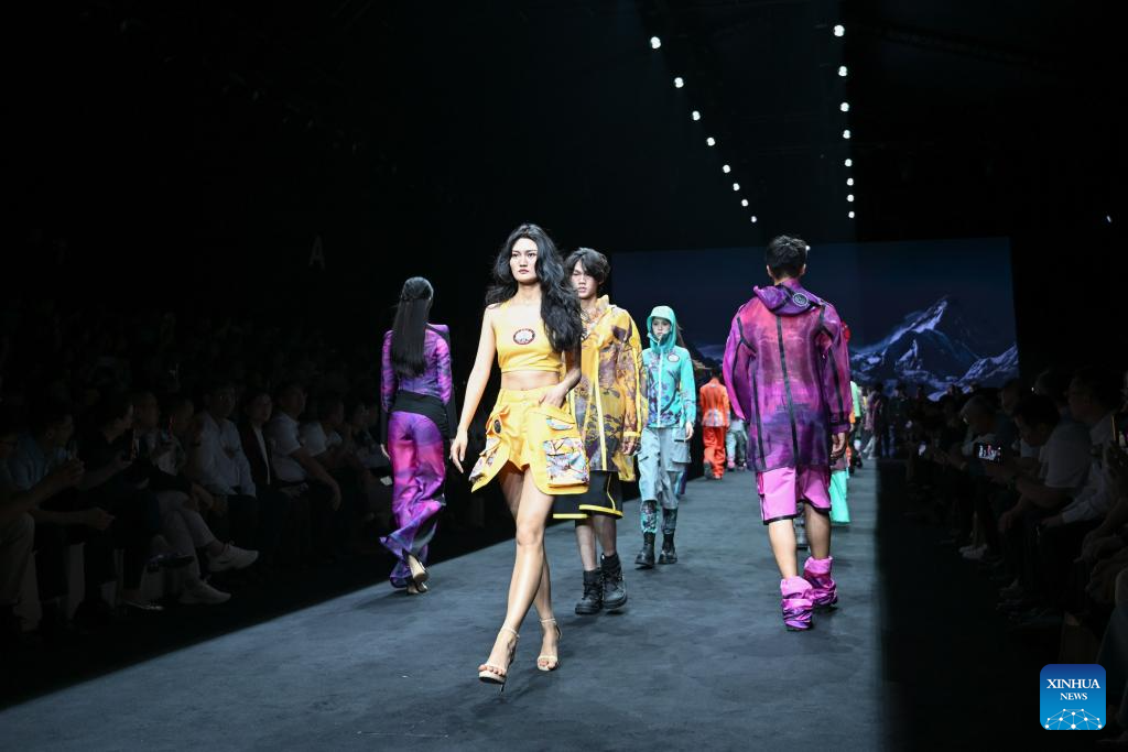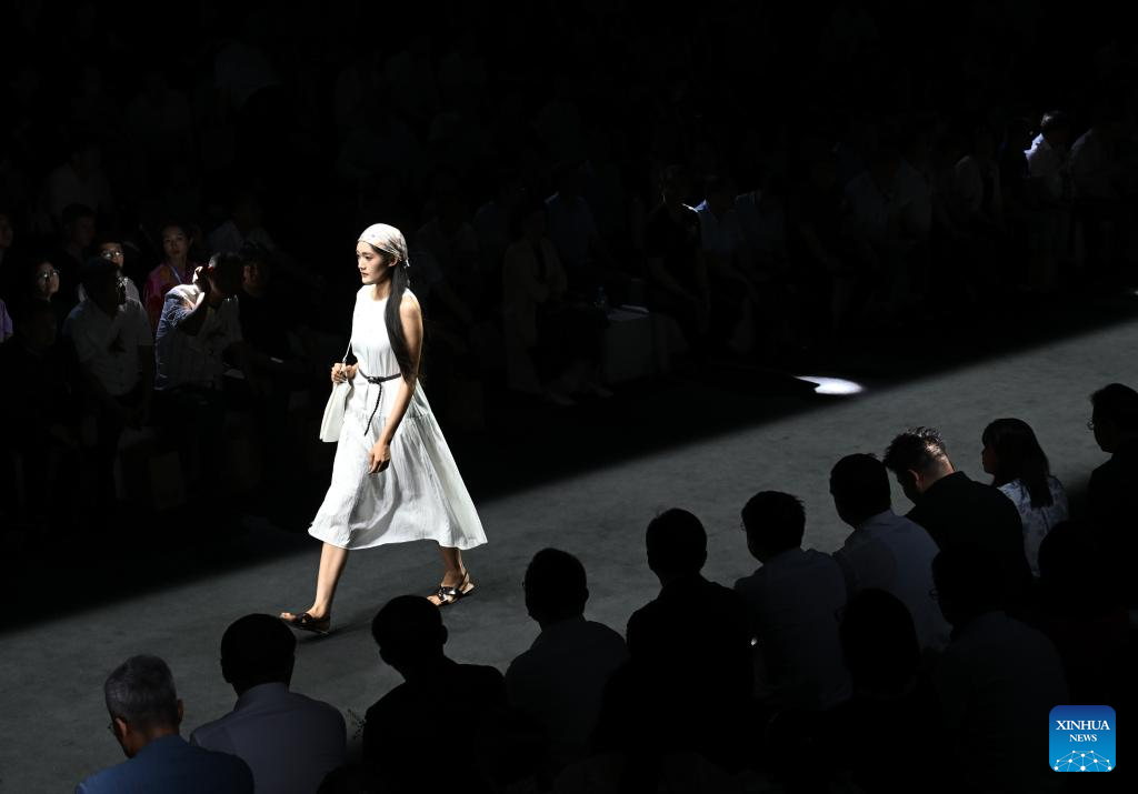 TIANJIN, 13 junio, 2025 (Xinhua) -- Imagen del 12 de junio de 2025 de modelos presentando creaciones en la Semana de la Moda de Tianjin 2025, en Tianjin, en el norte de China. El evento de moda se inauguró aquí el jueves. (Xinhua/Sun Fanyue)