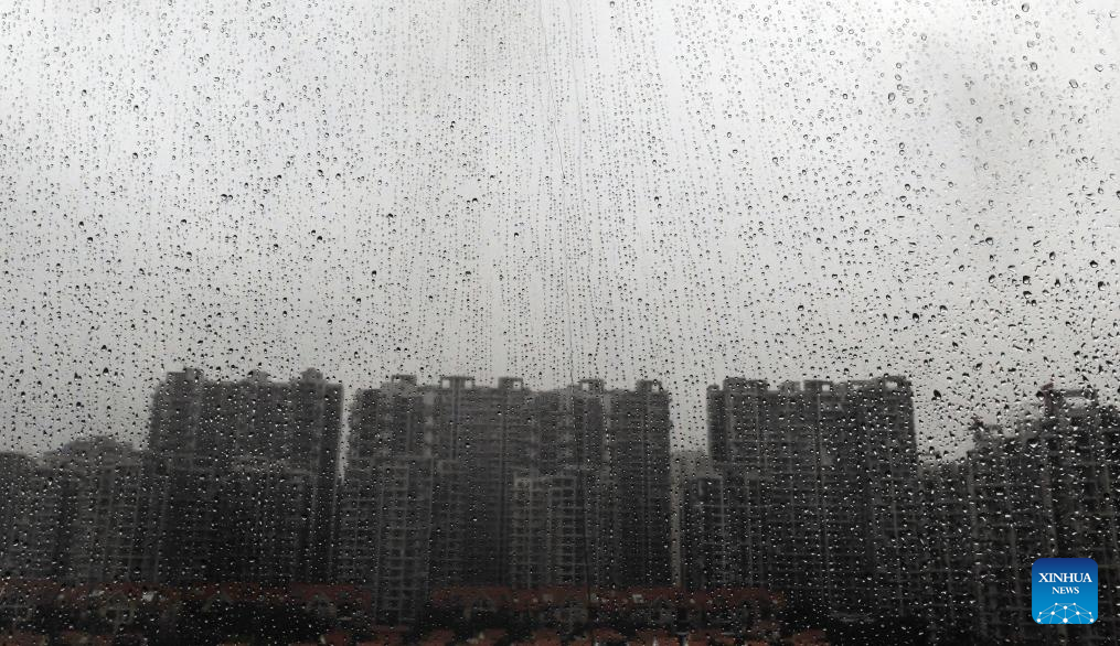 BEIHAI, 14 junio, 2025 (Xinhua) -- Imagen del 14 de junio de 2025 de gotas de lluvia sobre un cristal durante fuertes lluvias, en la ciudad de Beihai, en la región autónoma zhuang de Guangxi, en el sur de China. Múltiples autoridades chinas se reunieron el sábado para poner en marcha medidas de precaución frente al tifón Wutip, el primer tifón del año, que se espera traiga fuertes lluvias a las regiones meridionales del país. (Xinhua/Zhang Ailin)