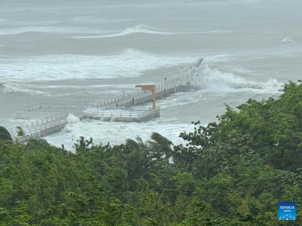 SANYA, 13 junio, 2025 (Xinhua) -- Fuertes vientos y olas son vistas en el área marítima de Dadonghai, en Sanya, en la provincia de Hainan, en el sur de China, el 13 de junio de 2025. A medida que el tifón Wutip continuaba fortaleciéndose, el servicio meteorológico provincial mantuvo una alerta de tifón de nivel III hasta las 11:00 horas del viernes. (Xinhua/Zhao Yingquan)