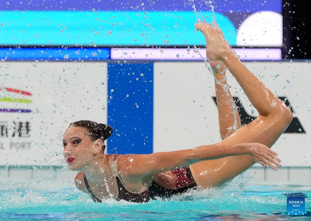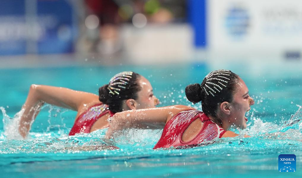 XI'AN, 14 junio, 2025 (Xinhua) -- Marla Fernanda Arellano Germes/Itzamary González Cuéllar, de México, compiten durante la final de dúo libre femenino en la Superfinal de la Copa del Mundo de Natación Artística 2025 de World Aquatics, en Xi'an, en la provincia de Shaanxi, en el noroeste de China, el 14 de junio de 2025. (Xinhua/Li Yibo)
