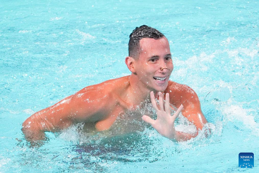 XI'AN, 14 junio, 2025 (Xinhua) -- Gustavo Adolfo Sánchez Acero, de Colombia, compite durante la final de solo libre masculino en la Superfinal de la Copa del Mundo de Natación Artística 2025 de World Aquatics, en Xi'an, en la provincia de Shaanxi, en el noroeste de China, el 14 de junio de 2025. (Xinhua/Zou Jingyi)