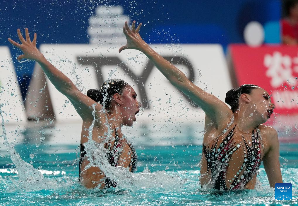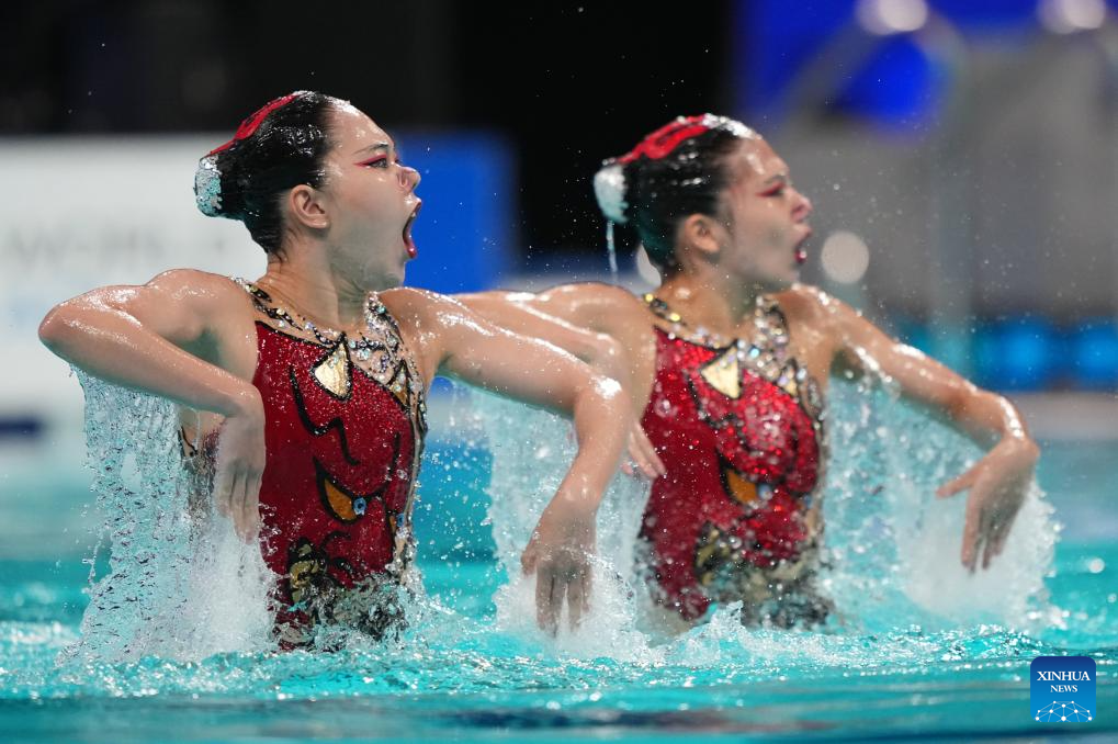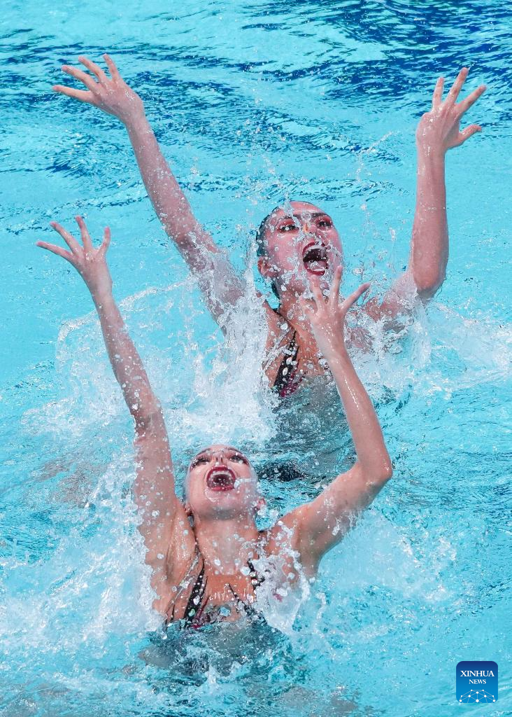 XI'AN, 14 junio, 2025 (Xinhua) -- Marla Fernanda Arellano Germes/Itzamary González Cuéllar, de México, compiten durante la final de dúo libre femenino en la Superfinal de la Copa del Mundo de Natación Artística 2025 de World Aquatics, en Xi'an, en la provincia de Shaanxi, en el noroeste de China, el 14 de junio de 2025. (Xinhua/Zou Jingyi)