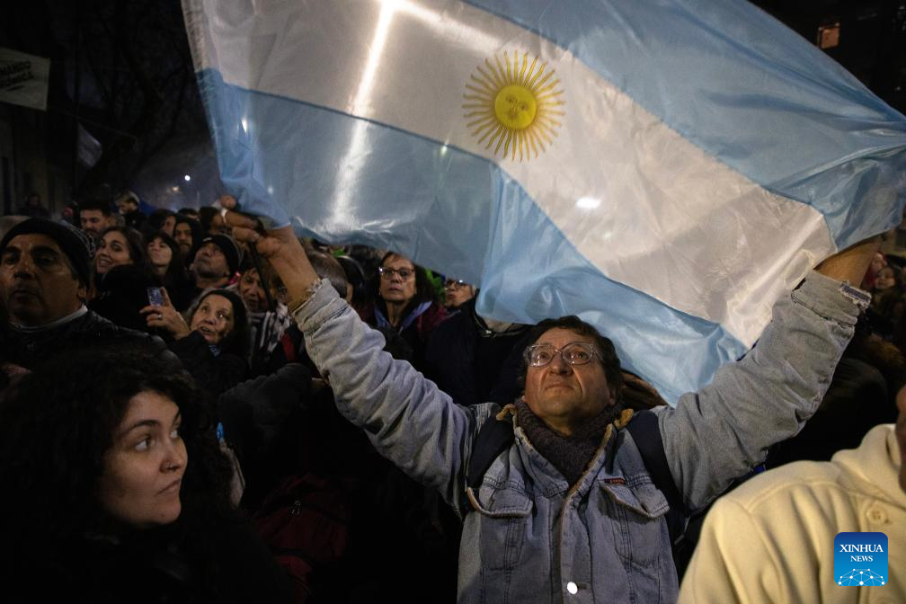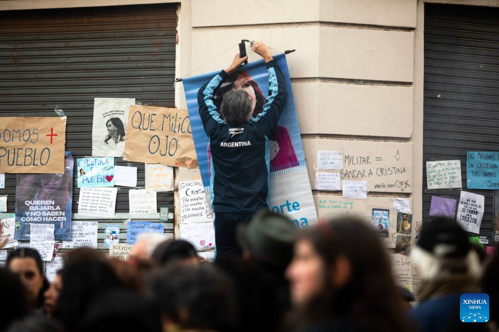 Simpatizantes de la expresidenta argentina, Cristina Fernández de Kirchner, se reúnen frente a la casa donde se encuentra la exmandataria, en la ciudad de Buenos Aires, capital de Argentina, el 17 de junio de 2025. La Justicia Federal de Argentina aprobó el martes un pedido de la expresidenta Cristina Fernández de Kirchner (2007-2015) para cumplir en su domicilio una pena a seis años de prisión, tras ser condenada en tres instancias judiciales en una causa por irregularidades en la concesión de obras públicas durante su mandato. (Xinhua/Martín Zabala)