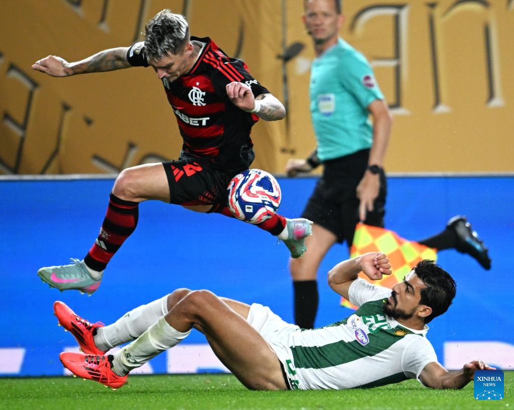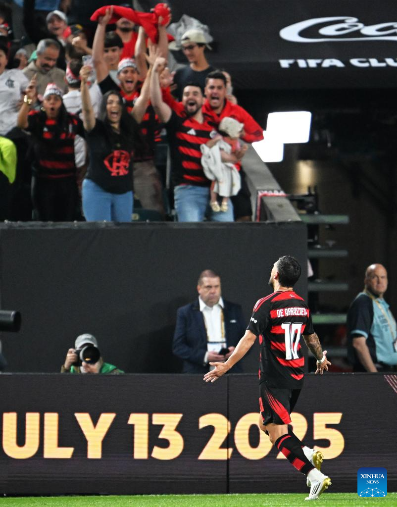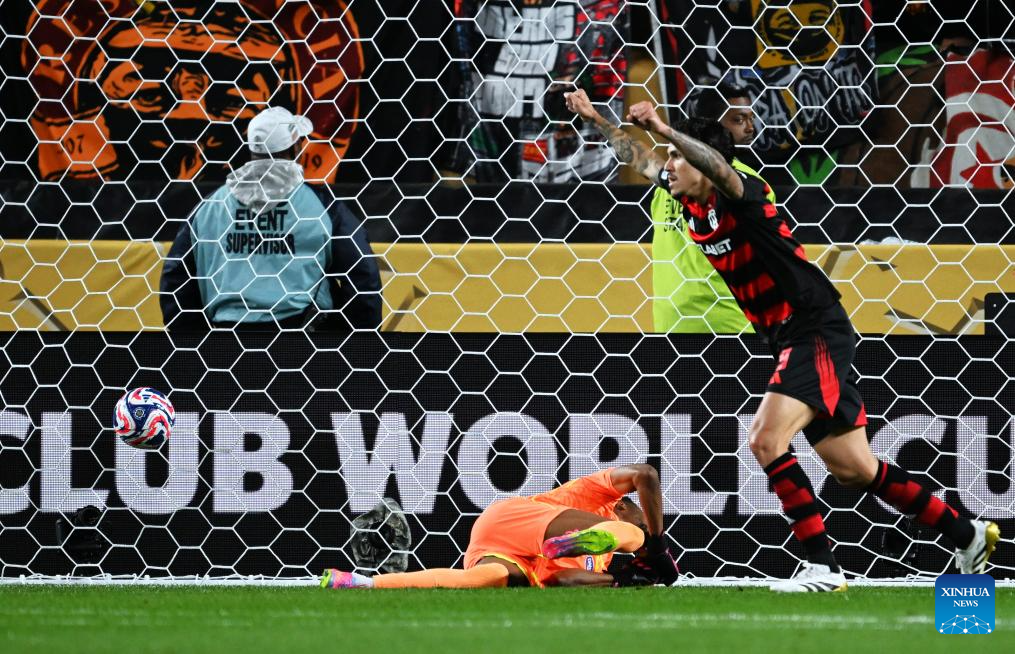 FILADELFIA, 17 junio, 2025 (Xinhua) -- Imagen del 16 de junio de 2025 de Pedro (d), de CR Flamengo, festejando la anotación de su equipo durante el partido de fútbol del Grupo D entre CR Flamengo, de Brasil, y Esperance de Tunisie, de Túnez, en la Copa Mundial de Clubes de la FIFA 2025, en Filadelfia, Estados Unidos. (Xinhua/Wu Xiaoling)