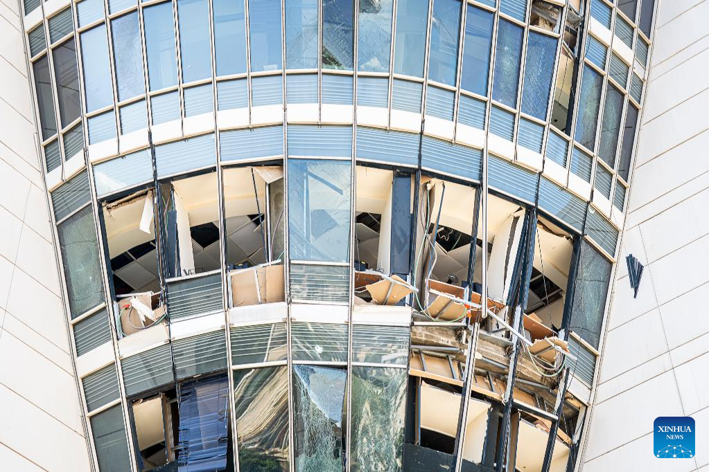 HAIFA, 20 junio, 2025 (Xinhua) -- Imagen del 20 de junio de 2025 de un edificio dañado, en Haifa, en el norte de Israel. Una nueva oleada de misiles lanzados desde Irán impactó el viernes en el norte de Israel, lo que dejó a 21 personas heridas y causó daños importantes en la ciudad costera de Haifa, de acuerdo con el servicio nacional de emergencias israelí, Magen David Adom (MDA). (Xinhua/Miki Schauder/JINI)