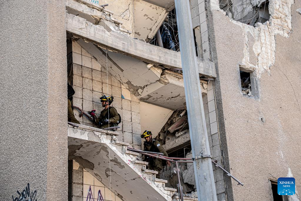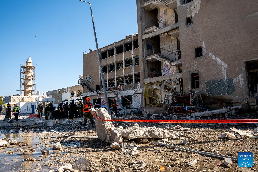 HAIFA, 20 junio, 2025 (Xinhua) -- Fuerzas de seguridad y rescate israelíes trabajan en la escena de un ataque con misiles desde Irán, en Haifa, en el norte de Israel, el 20 de junio de 2025. Una nueva oleada de misiles lanzados desde Irán impactó el viernes en el norte de Israel, lo que dejó a 21 personas heridas y causó daños importantes en la ciudad costera de Haifa, de acuerdo con el servicio nacional de emergencias israelí, Magen David Adom (MDA). (Xinhua/Miki Schauder/JINI)