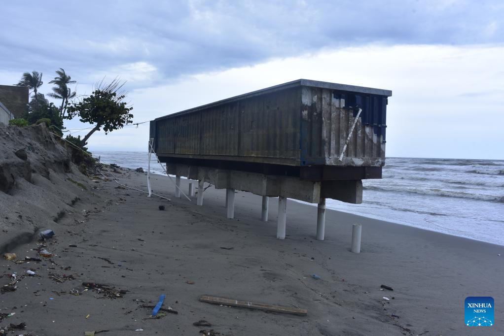 ACAPULCO, 19 junio, 2025 (Xinhua) -- Imagen del 19 de junio de 2025 de un contenedor dañado en una playa durante el paso del huracán Erick, en Acapulco, estado de Guerrero, en el sur México. El huracán Erick ha provocado afectaciones relevantes en infraestructura vial, hospitales y servicios básicos durante su paso por el sur de México, informó el jueves la presidenta Claudia Sheinbaum, quien subrayó que hasta el momento no se reporta ninguna pérdida humana. (Xinhua/Str)