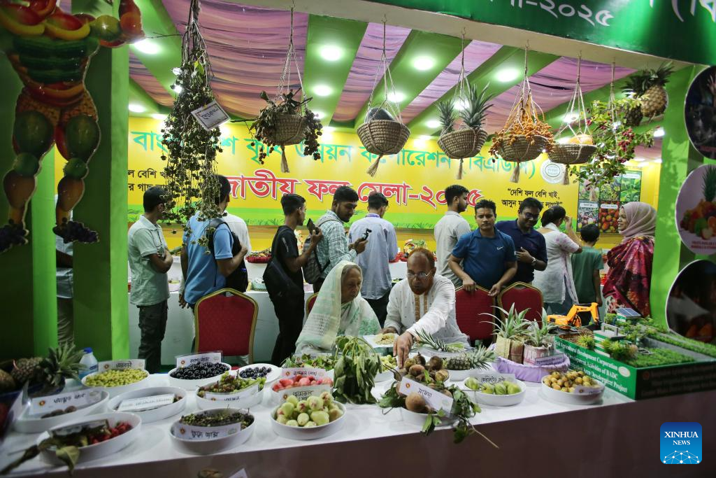 DHAKA, 22 junio, 2025 (Xinhua) -- Imagen del 20 de junio de 2025 de una feria de frutas, en Dhaka, Bangladesh. Una feria nacional de frutas de tres días concluyó en Dhaka el sábado. (Xinhua/Habibur Rahman)