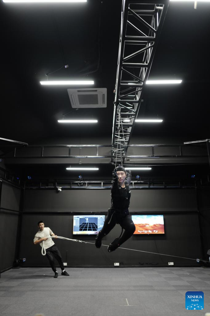 CHENGDU, 23 junio, 2025 (Xinhua) -- Imagen del 3 de noviembre de 2024 de empleados del juego de rol "WUCHANG: Fallen Feathers" realizando una captura de movimiento, en Chengdu, en la provincia de Sichuan, en el suroeste de China. Aprovechando el interés global generado por "Black Myth: Wukong", otro juego de rol AAA desarrollado en China, "WUCHANG: Fallen Feathers", se prepara para dar el salto a la escena internacional. Desarrollado por Chengdu Lingze Technology Co., Ltd., con sede en Chengdu, capital de la provincia de Sichuan, en el suroeste de China, "WUCHANG: Fallen Feathers" se lanzará globalmente el 24 de julio. (XInhua/Chengdu Lingze Technology Co., Ltd.)