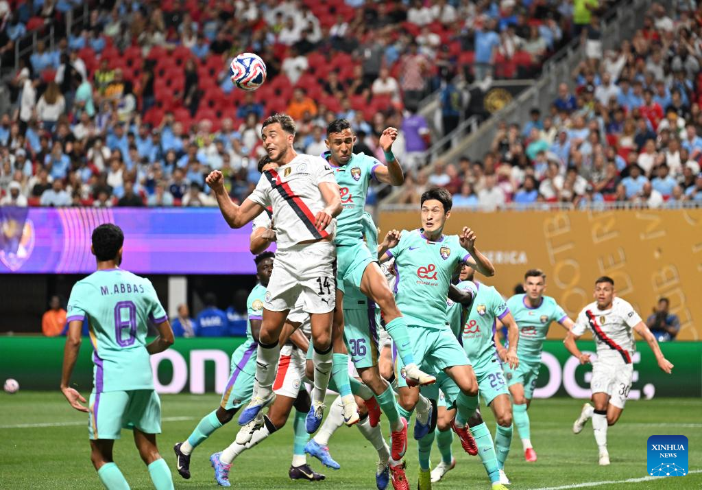 ATLANTA, 23 junio, 2025 (Xinhua) -- Imagen del 22 junio de 2025 de Nico González (i-arriba), de Manchester City, y Soufiane Rahimi (d-arriba), de Al Ain, disputando el balón durante el partido del Grupo G entre Manchester City, de Inglaterra, y Al Ain, de EAU, en la Copa Mundial de Clubes de la FIFA 2025, en Atlanta, Estados Unidos. (Xinhua/Chen Yichen)
