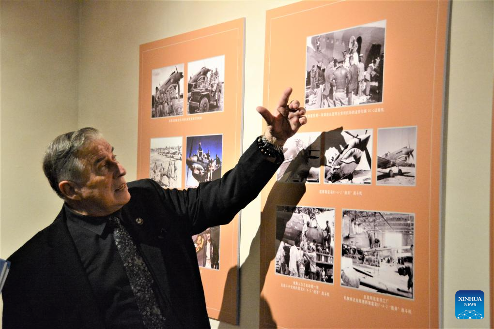 FUZHOU, 25 junio, 2025 (Xinhua) -- Imagen del 24 de junio de 2025 de Jeffrey Greene, presidente de la Fundación del Patrimonio de la Aviación Sino-Americana, visitando "Recordando a los Héroes: Exposición Fotográfica Histórica de los Tigres Voladores", en el Museo de Fujian, en Fuzhou, en la provincia de Fujian, en sureste de China. La exposición se inauguró aquí el martes, mostrando cientos de valiosas fotografías aportadas por veteranos de los Tigres Voladores, así como otros artículos de importancia histórica. (Xinhua/Li Haoze)