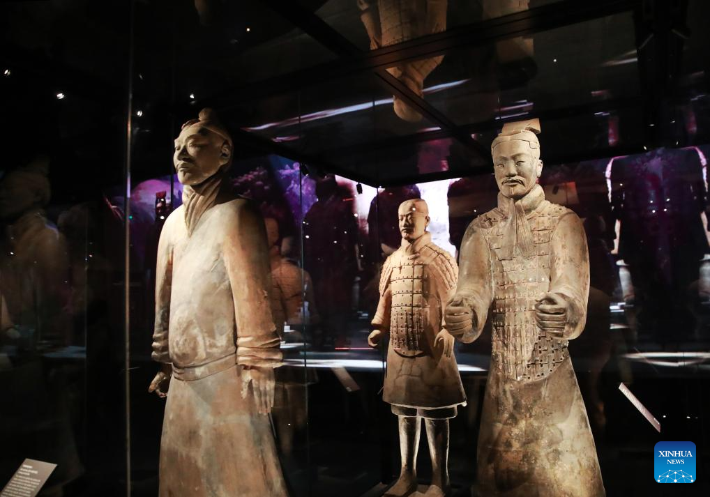 PERTH, 25 junio, 2025 (Xinhua) -- Exhibiciones son vistas durante la vista previa a los medios de comunicación de la exposición "Guerreros de Terracota: Legado del Primer Emperador" en el Museo de Australia Occidental Boola Bardip, en Perth, Australia, el 25 de junio de 2025. El museo albergará más de 225 artefactos de las dinastías Qin (221-207 a.C.) y Han (202 a.C.-220 d.C.), incluidos diez Guerreros de Terracota, por ocho meses comenzando a partir del 28 de junio. La exposición ha sido creada por el museo en colaboración con el Administración del Patrimonio Cultural Provincial de Shaanxi, el Centro de Promoción del Patrimonio Cultural de Shaanxi y el Museo del Sitio del Mausoleo del Emperador Qinshihuang. (Xinhua/Ma Ping)