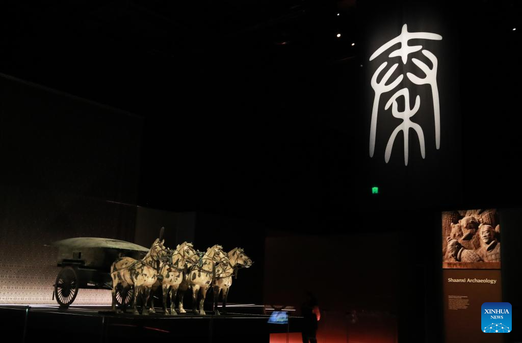 PERTH, 25 junio, 2025 (Xinhua) -- Una exhibición es vista durante la vista previa a los medios de comunicación de la exposición "Guerreros de Terracota: Legado del Primer Emperador" en el Museo de Australia Occidental Boola Bardip, en Perth, Australia, el 25 de junio de 2025. El museo albergará más de 225 artefactos de las dinastías Qin (221-207 a.C.) y Han (202 a.C.-220 d.C.), incluidos diez Guerreros de Terracota, por ocho meses comenzando a partir del 28 de junio. La exposición ha sido creada por el museo en colaboración con el Administración del Patrimonio Cultural Provincial de Shaanxi, el Centro de Promoción del Patrimonio Cultural de Shaanxi y el Museo del Sitio del Mausoleo del Emperador Qinshihuang. (Xinhua/Ma Ping)