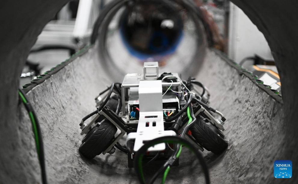 GUANGZHOU, 26 junio, 2025 (Xinhua) -- Imagen del 25 de junio de 2025 de un robot de inspección de tuberías visto en un centro provincial de innovación de robots de inteligencia artificial incorporada, en Shenzhen, en la provincia de Guangdong, en el sur de China. La producción de robots industriales de Guangdong superó las 240.000 unidades en 2024 con un aumento interanual de 31,2 por ciento, ocupando el primer lugar en el país por cinco años consecutivos, de acuerdo con el Departamento de Industria y Tecnología de la Información de la provincia de Guangdong. (Xinhua/Deng Hua)