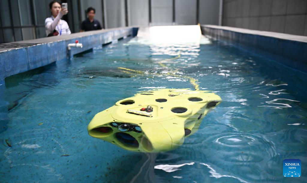 GUANGZHOU, 26 junio, 2025 (Xinhua) -- Imagen del 24 de junio de 2025 de un robot submarino inteligente siendo probado en un instituto provincial de robótica inteligente, en Dongguan, en la provincia de Guangdong, en el sur de China. La producción de robots industriales de Guangdong superó las 240.000 unidades en 2024 con un aumento interanual de 31,2 por ciento, ocupando el primer lugar en el país por cinco años consecutivos, de acuerdo con el Departamento de Industria y Tecnología de la Información de la provincia de Guangdong. (Xinhua/Deng Hua)