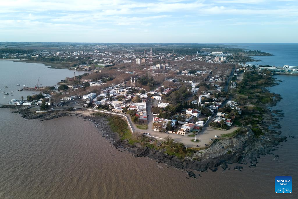 COLONIA DEL SACRAMENTO, 26 junio, 2025 (Xinhua) -- Imagen tomada con un dron el 25 de junio de 2025 de una vista panorámica de Colonia del Sacramento, Uruguay. Colonia del Sacramento, ubicada en el suroeste de Uruguay en las orillas del Río de la Plata, es conocida por su bien conservada arquitectura colonial. En 1995 fue inscrita como Patrimonio de la Humanidad por la UNESCO. (Xinhua/Ezequiel Putruele)