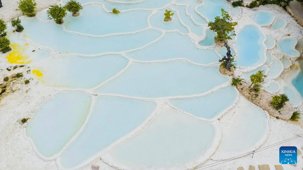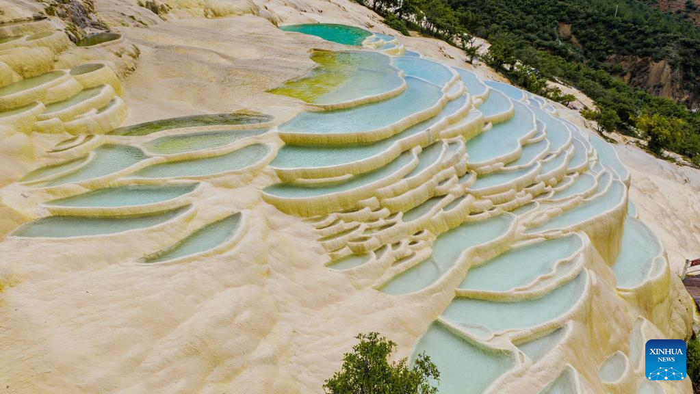 DEQEN, 27 junio, 2025 (Xinhua) -- Vista aérea tomada con un dron el 26 de junio de 2025 de Baishuitai, en el poblado de Sanba, en Shangri-la, en la prefectura autónoma tibetana de Deqen, en la provincia de Yunnan, en el suroeste de China. Formada por sedimentos con alto contenido de carbonato de calcio en aguas de manantial, Baishuitai es una de las terrazas de piedra caliza más grandes de China. (Xinhua/Pu Chao)