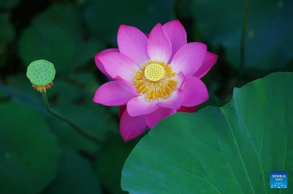 BEIJING, 28 junio, 2025 (Xinhua) -- Imagen del 28 de junio de 2025 de una flor de loto en un estanque de lotos, en la ciudad de Tengzhou, en la provincia de Shandong, en el este de China. (Xinhua/Li Zhijun)