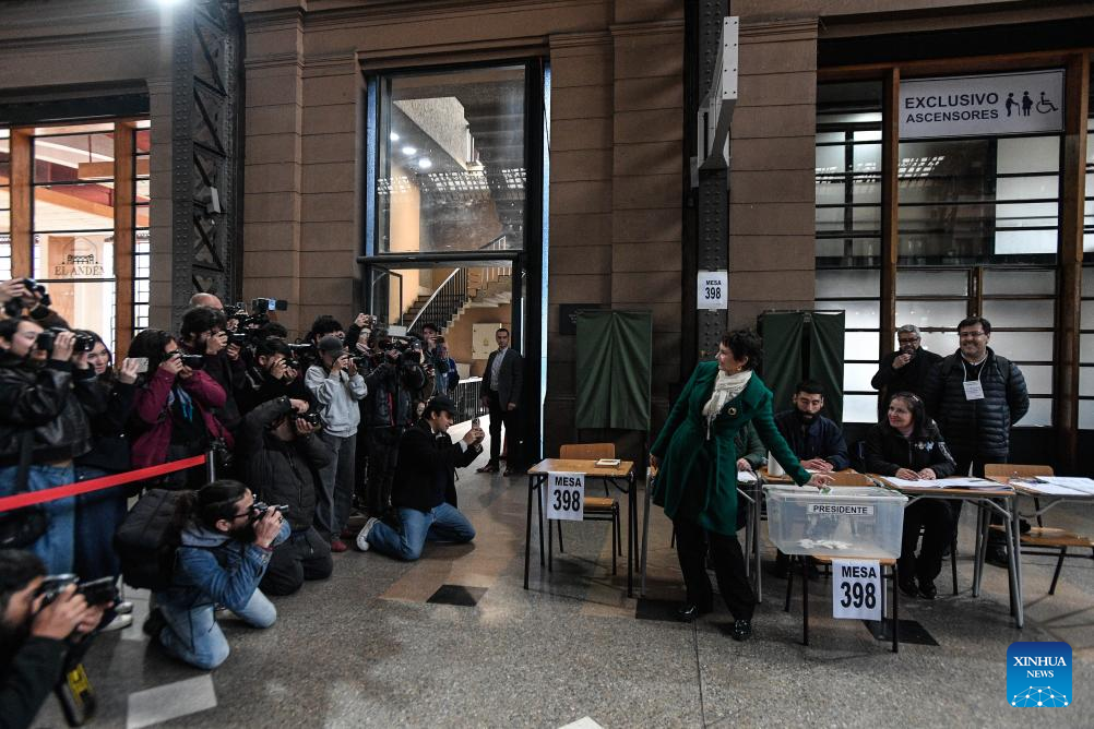 SANTIAGO, 29 junio, 2025 (Xinhua) -- La candidata presidencial, Carolina Tohá (c), del Partido por la Democracia, emite su voto en un centro electoral durante la elección primaria de las presidenciales, en la ciudad de Santiago, capital de Chile, el 29 de junio de 2025. La elección primaria de las presidenciales arrancó el domingo con normalidad en Chile, en una jornada en la que la ciudadanía escogerá al candidato de la izquierda que participará en la contienda por la Presidencia, al ser el único bloque político que se inscribió, informó el Servicio Electoral (Servel). (Xinhua/Jorge Villegas)