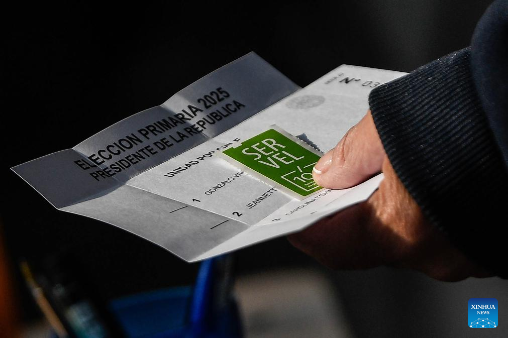 SANTIAGO, 29 junio, 2025 (Xinhua) -- Una persona sostiene una boleta electoral en un centro electoral durante la elección primaria de las presidenciales, en la ciudad de Santiago, capital de Chile, el 29 de junio de 2025. La elección primaria de las presidenciales arrancó el domingo con normalidad en Chile, en una jornada en la que la ciudadanía escogerá al candidato de la izquierda que participará en la contienda por la Presidencia, al ser el único bloque político que se inscribió, informó el Servicio Electoral (Servel). (Xinhua/Jorge Villegas)