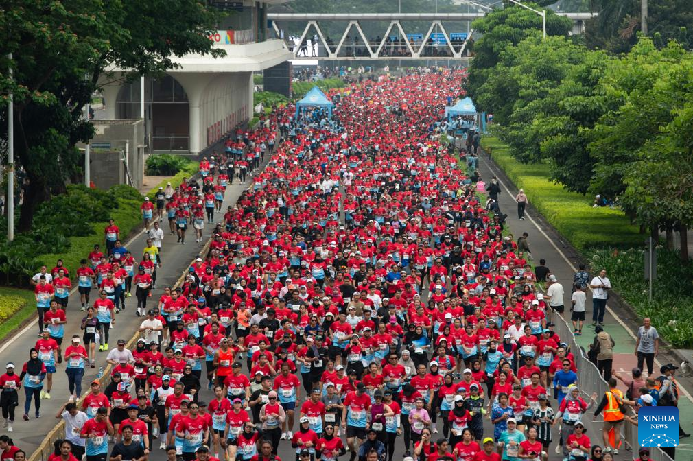 YAKARTA, 29 junio, 2025 (Xinhua) -- Participantes corren durante el Maratón Internacional de Yakarta 2025, en Yakarta, Indonesia, el 29 de junio de 2025. (Xinhua/Veri Sanovri)