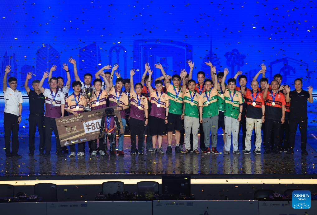 BEIJING, 29 junio, 2025 (Xinhua) -- Imagen del 28 de junio de 2025 de miembros de los equipos participantes de la Universidad de Tsinghua, la Universidad Agrícola de China y la Universidad de Ciencias de la Información y Tecnologías de Beijing posando para una fotografía de grupo durante la ceremonia de entrega de premios de un partido de fútbol de robots impulsados por IA, en Beijing, capital de China. Un partido de fútbol robot 3 contra 3, en el que todos los jugadores eran autonómos mediante inteligencia artificial, concluyó aquí el sábado. Cuatro equipos de tres universidades chinas compitieron en el partido, y el campeón fue el equipo THU Robotics de la Universidad Tsinghua. (Xinhua/Zhang Chenlin)