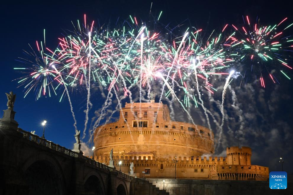 Fuegos artificiales sobre el Castillo de Sant'Angelo en Italia | Spanish.xinhuanet.com