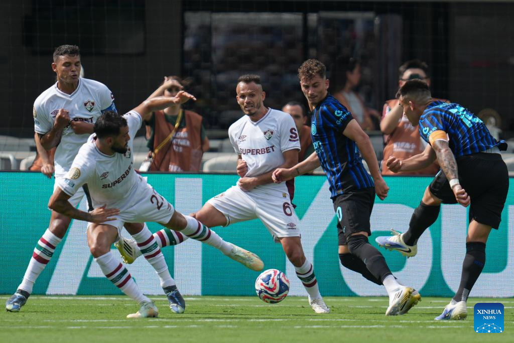 CHARLOTTE, 1 julio, 2025 (Xinhua) -- Imagen del 30 de junio de 2025 de Lautaro Martínez (d), de FC Inter Milan, disparando el balón durante el partido de octavos de final entre FC Inter Milan, de Italia, y Fluminense FC, de Brasil, en la Copa Mundial de Clubes de la FIFA 2025, en el Bank of America Stadium, en Charlotte, Carolina del Norte, Estados Unidos. (Xinhua/Huang Zongzhi)