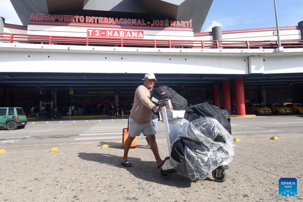 Imagen del 2 de julio de 2025 de un hombre empujando un carrito con equipaje en el Aeropuerto Internacional José Martí, en La Habana, capital de Cuba. El Gobierno cubano dio otro paso adelante en el fortalecimiento de la política de Tolerancia Cero al anunciar el establecimiento en la isla de un Observatorio Nacional de Drogas. (Xinhua/Joaquín Hernández)