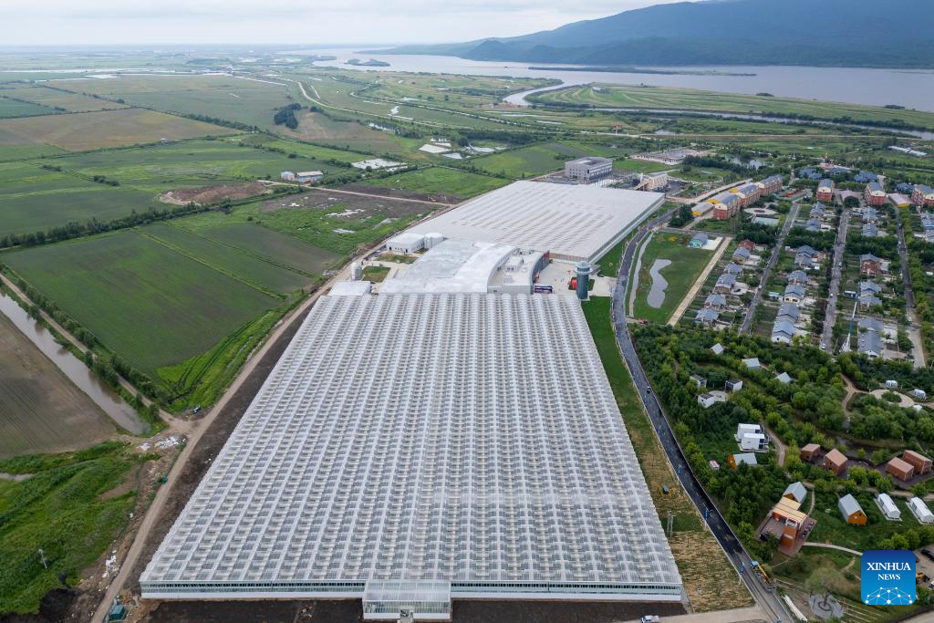FUYUAN, 2 julio, 2025 (Xinhua) -- Vista aérea tomada con un dron el 2 de julio de 2025 de los invernaderos de cristal inteligentes en un moderno parque industrial agrícola, en la ciudad de Fuyuan, en la provincia de Heilongjiang, en el noreste de China. Ubicada en el extremo oriental de China, la ciudad de Fuyuan es conocida como "el polo oriental de Huaxia (concepto histórico que representa a China)". En los últimos años, la ciudad ha impulsado continuamente la estandarización e industrialización agrícola, desarrollando vigorosamente una agricultura moderna que incorpora inteligencia digital y sostenibilidad ecológica, una iniciativa que se espera traiga prosperidad a la zona fronteriza y mejore los ingresos de los habitantes. (Xinhua/Zhang Tao)
