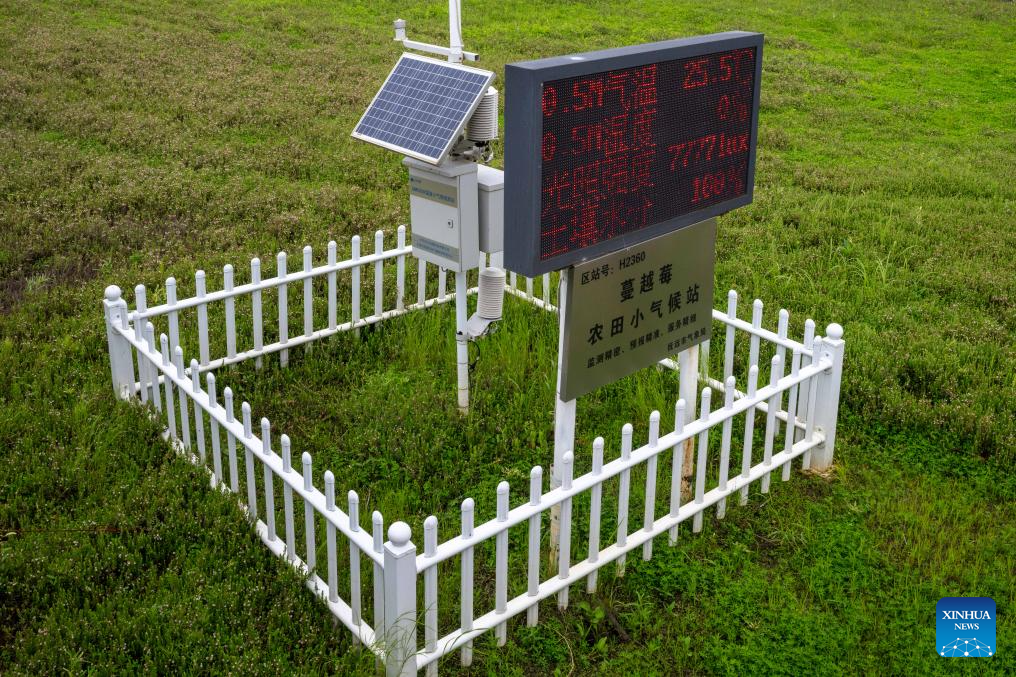 FUYUAN, 2 julio, 2025 (Xinhua) -- Imagen del 2 de julio de 2025 de un detector climático en la base de plantación de arándanos, en la ciudad de Fuyuan, en la provincia de Heilongjiang, en el noreste de China. Ubicada en el extremo oriental de China, la ciudad de Fuyuan es conocida como "el polo oriental de Huaxia (concepto histórico que representa a China)". En los últimos años, la ciudad ha impulsado continuamente la estandarización e industrialización agrícola, desarrollando vigorosamente una agricultura moderna que incorpora inteligencia digital y sostenibilidad ecológica, una iniciativa que se espera traiga prosperidad a la zona fronteriza y mejore los ingresos de los habitantes. (Xinhua/Zhang Tao)