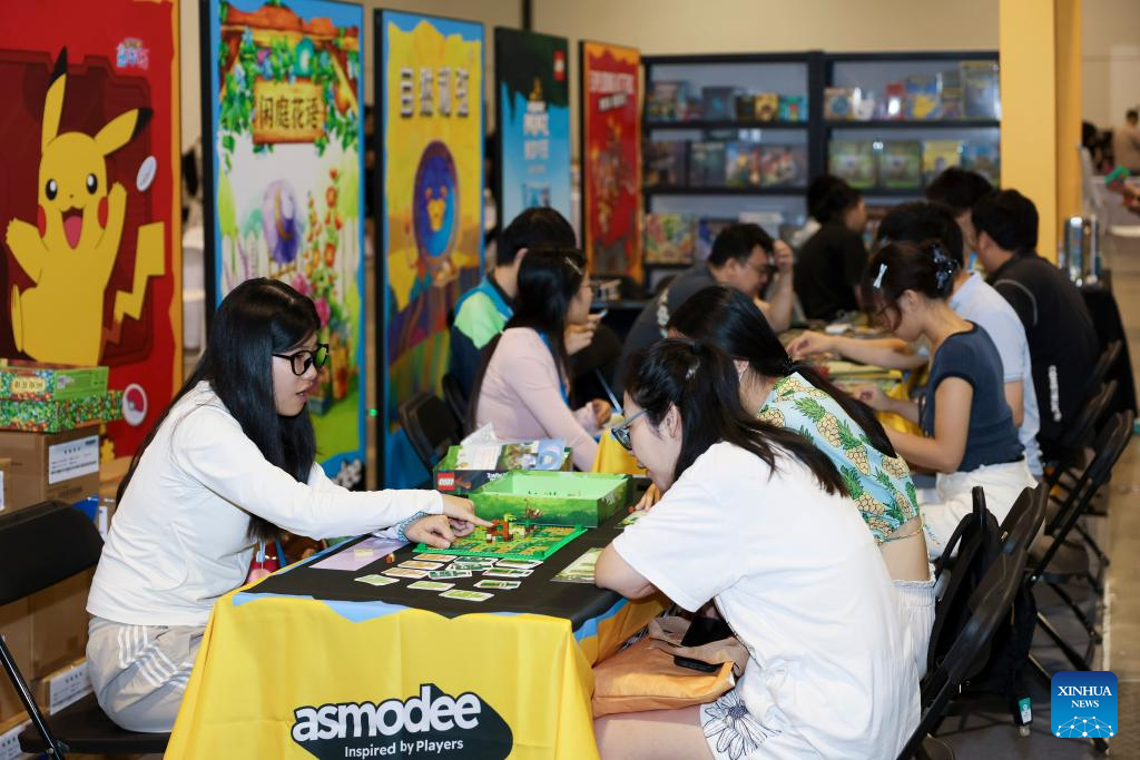SHANGHAI, 4 julio, 2025 (Xinhua) -- Personas juegan a juegos de cartas durante la Exposición Internacional de Dibujos Animados y Juegos de China 2025 (CCG Expo 2025, por sus siglas en inglés), en Shanghai, en el este de China, el 4 de julio de 2025. La CCG Expo 2025 comenzó el viernes en el Centro de Convenciones y Exposiciones de Shanghai de Abastecimiento Internacional con la participación de 480 expositores nacionales e internacionales. El evento durará hasta el 6 de julio. (Xinhua/Wang Xiang)