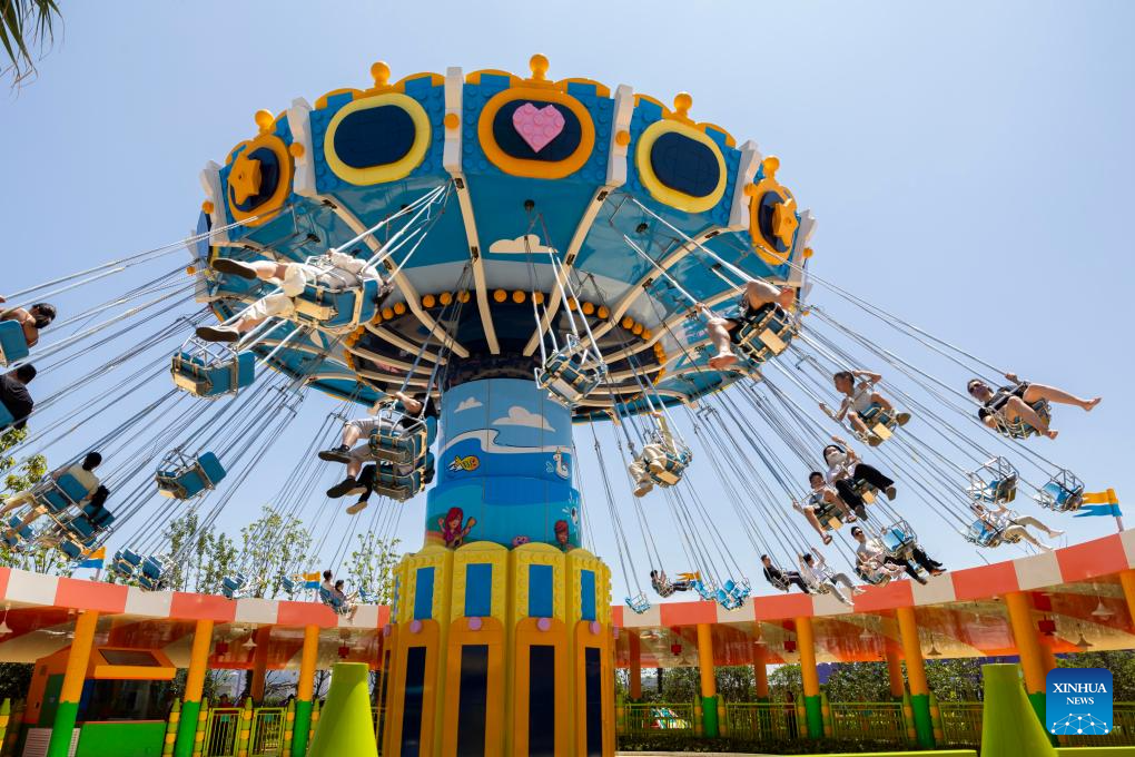 SHANGHAI, 5 julio, 2025 (Xinhua) -- Visitantes disfrutan de una atracción de feria en el LEGOLAND Shanghai Resort, en Shanghai, en el este de China, el 5 de julio de 2025. En un estallido de colorida creatividad e imaginación desbordante, LEGOLAND Shanghai Resort abrió sus puertas el sábado a la primera ola de entusiasmados visitantes, anunciando la llegada del primer resort LEGOLAND de China. (Xinhua/Wang Xiang)