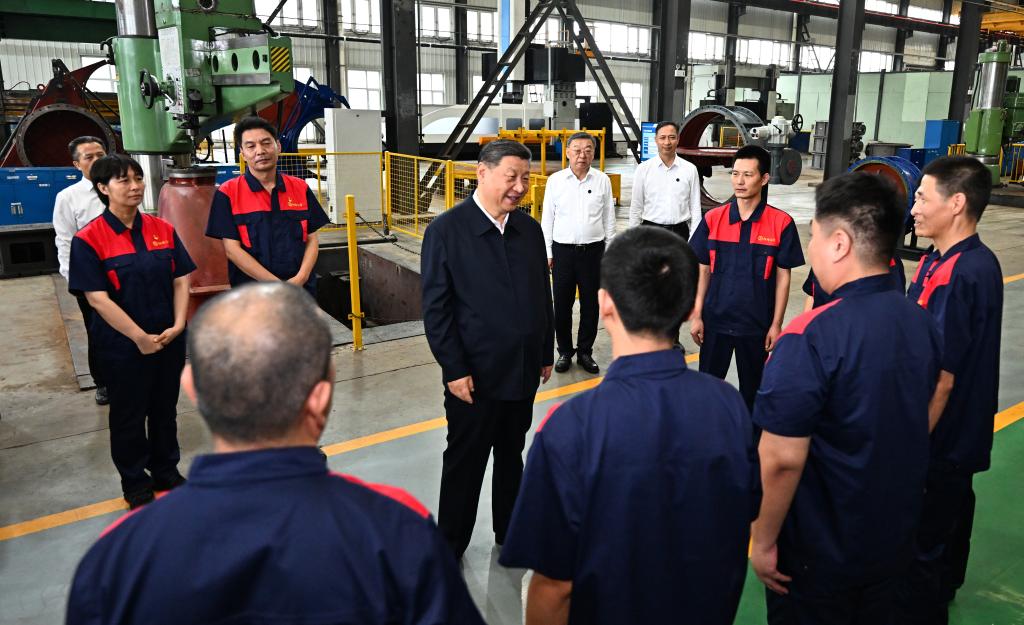 YANGQUAN, Shanxi, 7 jul (Xinhua) -- Xi Jinping, secretario general del Comité Central del Partido Comunista de China, inspeccionó en la tarde de hoy lunes una empresa de fabricación de válvulas en la ciudad de Yangquan, en la provincia septentrional china de Shanxi, donde se informó acerca de los esfuerzos de la provincia para promover la transformación y modernización de las industrias y el desarrollo de alta calidad.