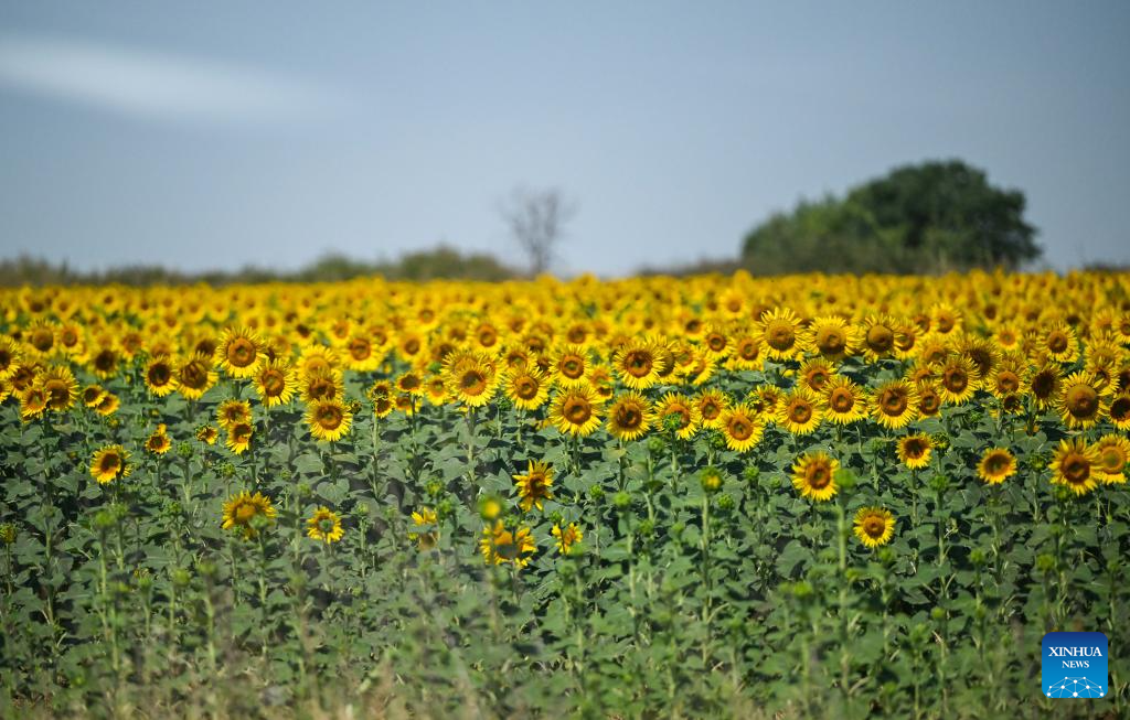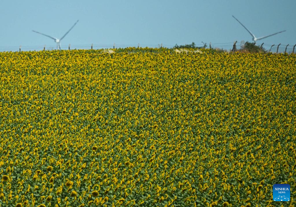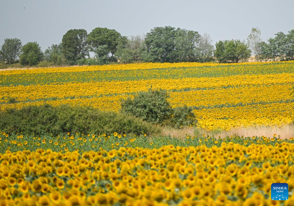 KIRKLARELI, 6 julio, 2025 (Xinhua) -- Imagen del 6 de julio de 2025 de un campo de girasoles, en la provincia de Kirklareli, en Turquía. (Xinhua/Liu Lei)