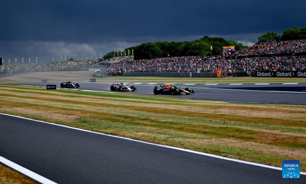 LONDRES, 7 julio, 2025 (Xinhua) -- Imagen del 6 de julio de 2025 de pilotos compitiendo durante el Gran Premio de Reino Unido de Fórmula Uno 2025, en el Circuito de Silverstone, en Londres, Reino Unido. (Xinhua/Li Ying)