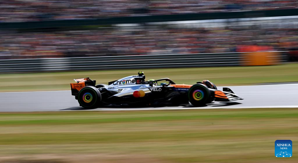 LONDRES, 7 julio, 2025 (Xinhua) -- Imagen del 6 de julio de 2025 del piloto británico de la escudería McLaren, Lando Norris, conduciendo durante el Gran Premio de Reino Unido de Fórmula Uno 2025, en el Circuito de Silverstone, en Londres, Reino Unido. (Xinhua/Li Ying)
