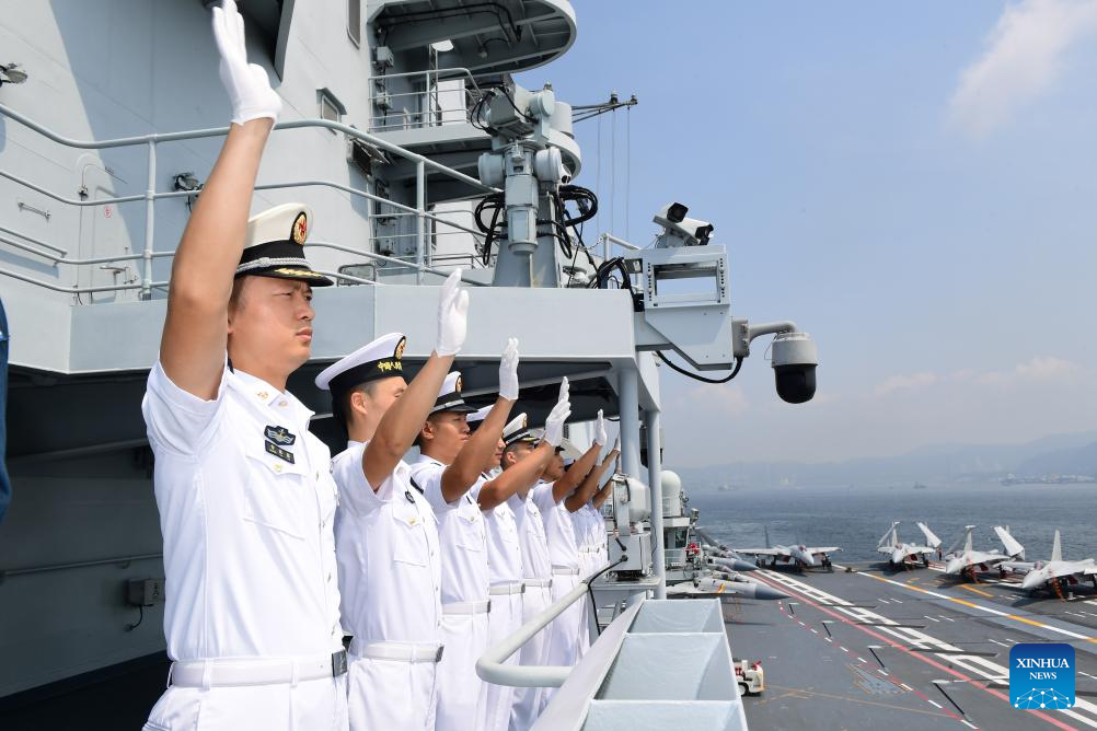 HONG KONG, 7 julio, 2025 (Xinhua) -- El portaaviones Shandong zarpa del Puerto Victoria, en Hong Kong, en el sur de China, el 7 de julio de 2025. Una flota de la Armada del Ejército Popular de Liberación (EPL) de China, liderada por el portaaviones Shandong, partió de Hong Kong, en el sur de China, el lunes por la mañana, culminando una visita de cinco días. El gobierno de la Región Administrativa Especial de Hong Kong (RAEHK) organizó una ceremonia de despedida en la Base Naval de la Isla Stonecutters. (Xinhua/Li Gang)