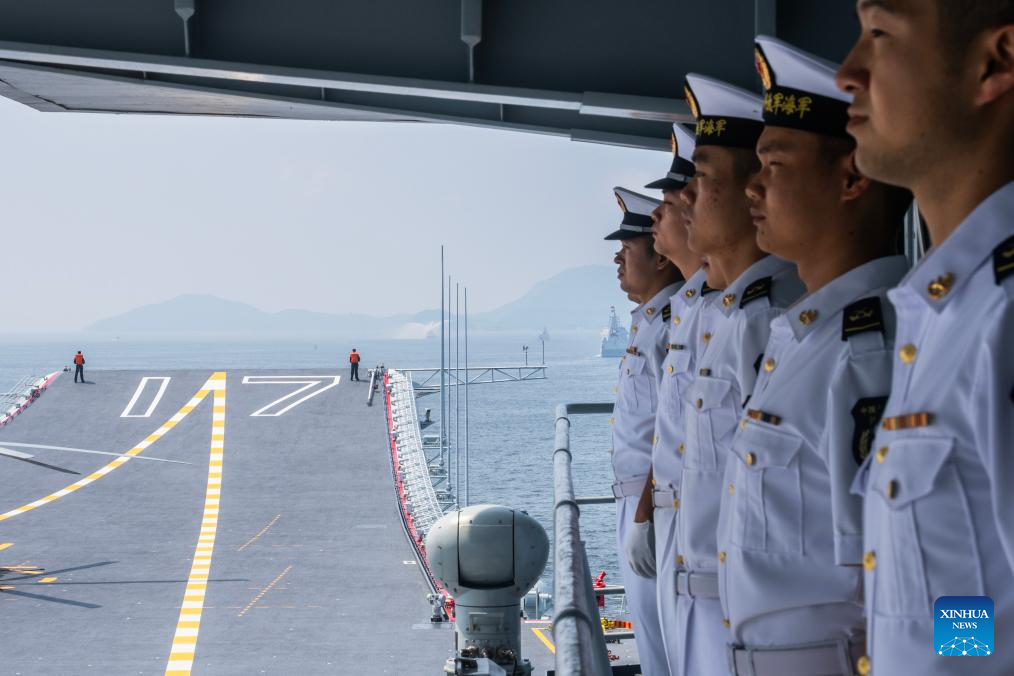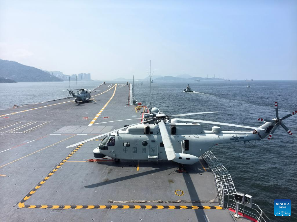 HONG KONG, 7 julio, 2025 (Xinhua) -- El portaaviones Shandong zarpa del Puerto Victoria, en Hong Kong, en el sur de China, el 7 de julio de 2025. Una flota de la Armada del Ejército Popular de Liberación (EPL) de China, liderada por el portaaviones Shandong, partió de Hong Kong, en el sur de China, el lunes por la mañana, culminando una visita de cinco días. El gobierno de la Región Administrativa Especial de Hong Kong (RAEHK) organizó una ceremonia de despedida en la Base Naval de la Isla Stonecutters. (Xinhua/Li Yun)