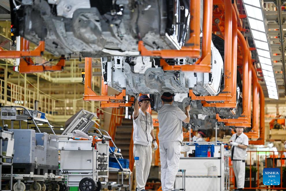 TIANJIN, 7 julio, 2025 (Xinhua) -- Empleados operan en una línea de montaje de la base de FAW-Volkswagen, en Tianjin, en el norte de China, el 7 de julio de 2025. En los últimos años, Tianjin se ha comprometido a construir fábricas inteligentes y acelerar la integración profunda de la economía digital con la economía real. (Xinhua/Zhao Zishuo)