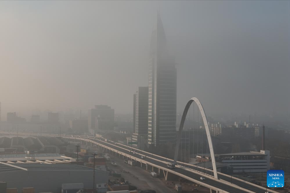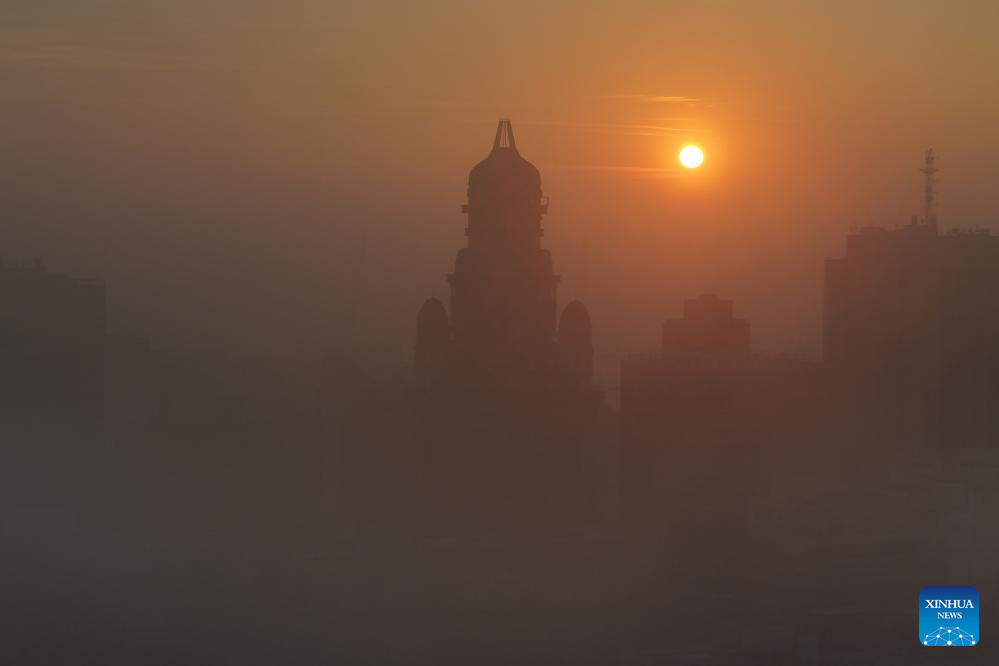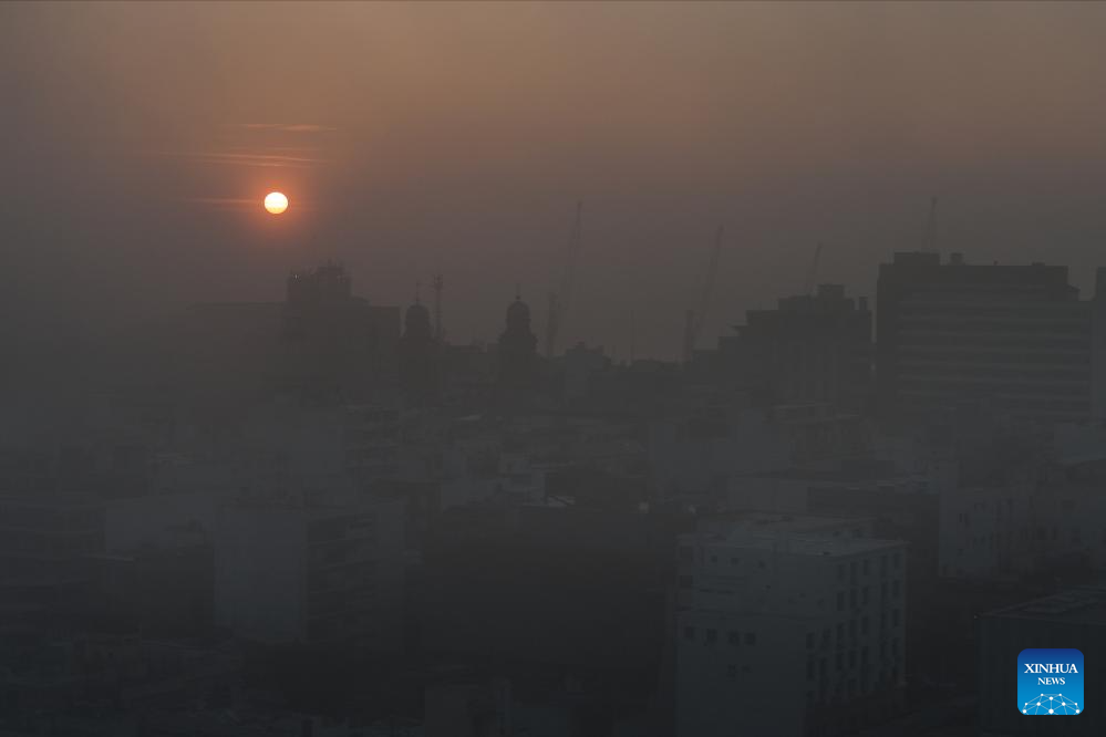 MONTEVIDEO, 8 julio, 2025 (Xinhua) -- Imagen tomada con un dron el 8 de julio de 2025 de edificios vistos en medio de la niebla, en Montevideo, capital de Uruguay. (Xinhua/Nicolás Celaya)