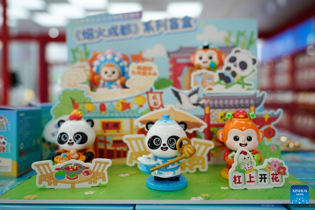 CHENGDU, 8 julio, 2025 (Xinhua) -- Imagen del 8 de julio de 2025 de productos exhibidos en una tienda oficial de artículos con licencia para los Juegos Mundiales 2025, en Chengdu, en la provincia de Sichuan, en el suroeste de China. Los Juegos alcanzaron el martes la cuenta regresiva de 30 días y se llevarán a cabo del 7 al 17 de agosto. (Xinhua/Xu Bingjie)